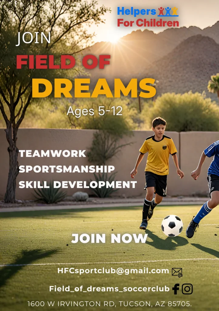 Field of Dreams Soccer Club is a newly established youth soccer league. We aim to promote teamwork, sportsmanship, and a supportive environment where kids can develop their skills, build friendships, and cultivate a lifelong passion for soccer.
